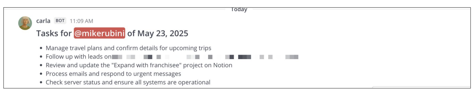 Imagine having a right-hand assistant who never sleeps, knows your company inside-out, and proactively helps you stay on top of everything — without needing coffee breaks or PTO. That’s Carla, our AI Chief of Staff.