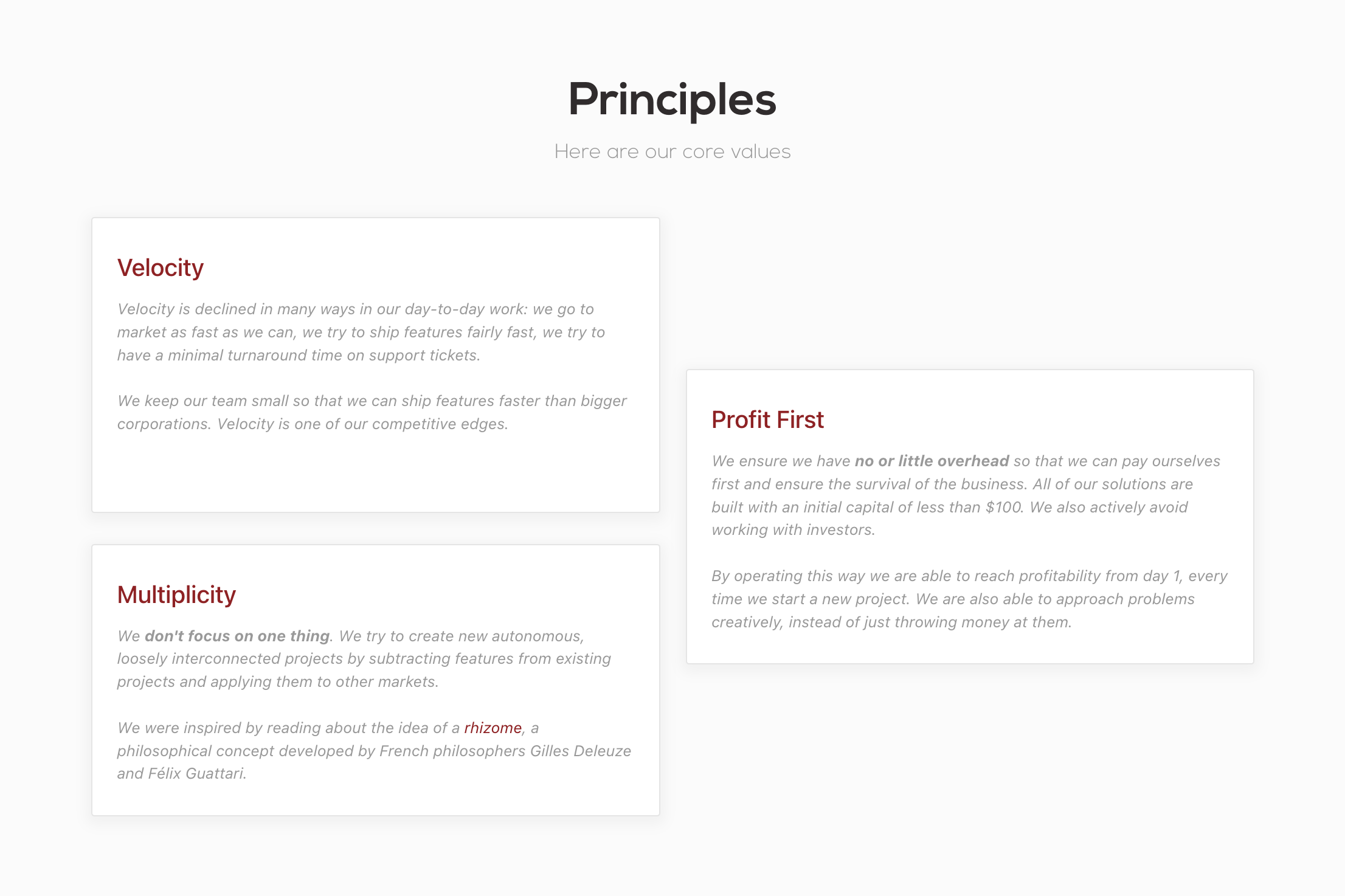 In the last months, I’ve dropped transparency as one of my core principles, so now we have three: