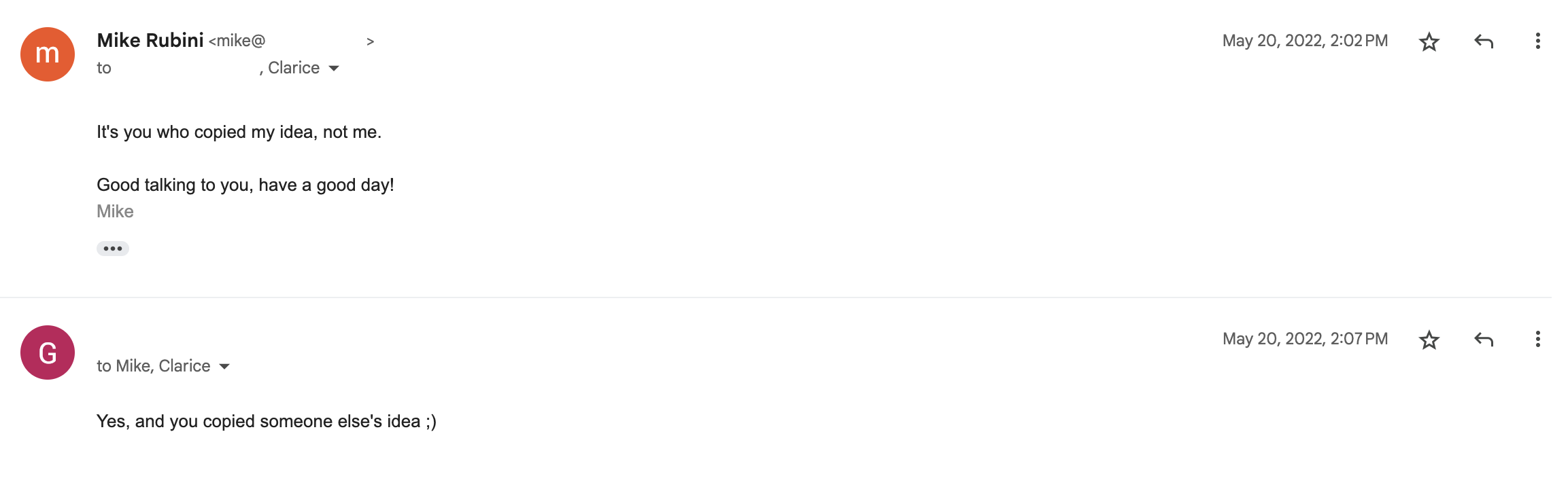 He also admitted, by the way, that he copied me.